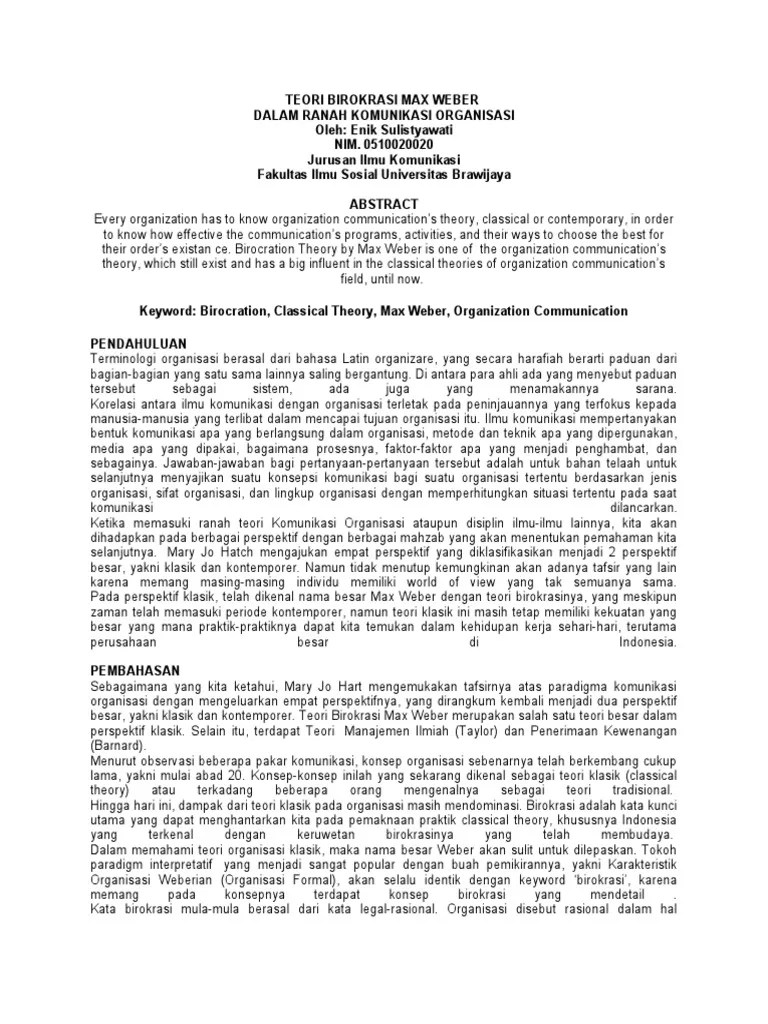 Doc Bab 1 Konsep Birokrasi Eko Budi Sulistio Academia Edu from 0.academia-photos.com Dia menggambarkan tipe organisasi tersebut dengan maksud menjadikannya sebagai landasan untuk berteori tentang bagaimana pekerjaan dapat dilakukan dalam kelompok besar. Ada aturan, norma, dan prosedur untuk mengatur organisasi dalam model teori birokrasi max weber, ditekankan mengenai pentingnya peraturan. Seperti yang diuraikan dalam teori. Kelebihan sistem birokrasi max weber: 0510020020 jurusan ilmu komunikasi fakultas ilmu sosial universitas brawijaya abstract every organization has to know organization communication s theory. Max weber alman kökenli bir sosyologtur ve çalışmalarını bu açıdan ele almak da mümkündür. Max weber mempunyai pendidikan berlatar belakang di bidang hukum. Weber percaya bahwa peraturan seharusnya diterapkan secara rasional dan harusnya.