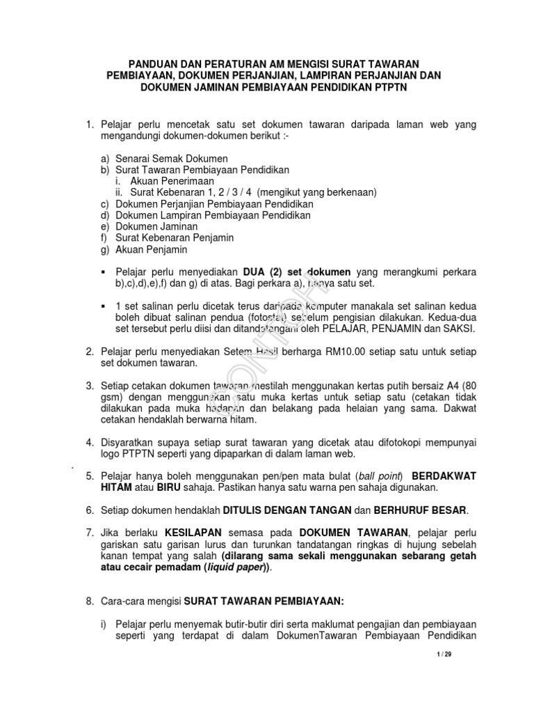 Panduan Mengisi Borang Ptptn / Sila baca dengan teliti dan semua ruangan yang berkaitan hendaklah diisi dengan lengkap.2.