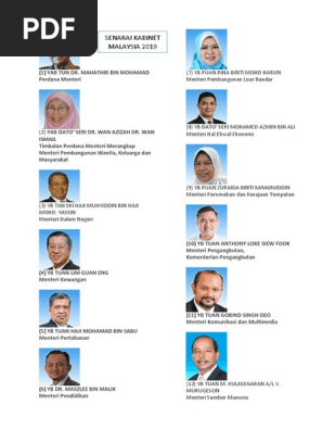 Senarai Penuh Kabinet from assets.bharian.com.my Senarai menteri kabinet malaysia adalah: Senarai tahun 2019 menyaksikan kemerosotan kekayaan bagi 30 orang hartawan malaysia dari senarai tahun 2018, sementara hanya 11 orang menikmati peningkatan. Malaysia bakal mempunyai barisan menteri kabinet yang baharu 2020 susulan dari tumbangnya kerajaan pakatan harapan (ph) yang kini diganti dengan kerajaan baharu dikenali sebagai perikatan nasional. Senarai konsert paling hangat dalam negara sepanjang 2019. Mahathir bin mohamad (7) yb puan rina binti mohd harun perdana menteri menteri pembangunan luar bandar. Berikut adalah senarai menteri kabinet malaysia baharu tahun 2018. Infodweb portal informasi rasmi jadual cuti umum dan negeri serta hari kelepasan am. Pengumuman senarai menteri kabinet baru 2020 ini bakal menjawab segala teka teki tentang bakal jemaah menteri yang akan menyertai kerajaan.